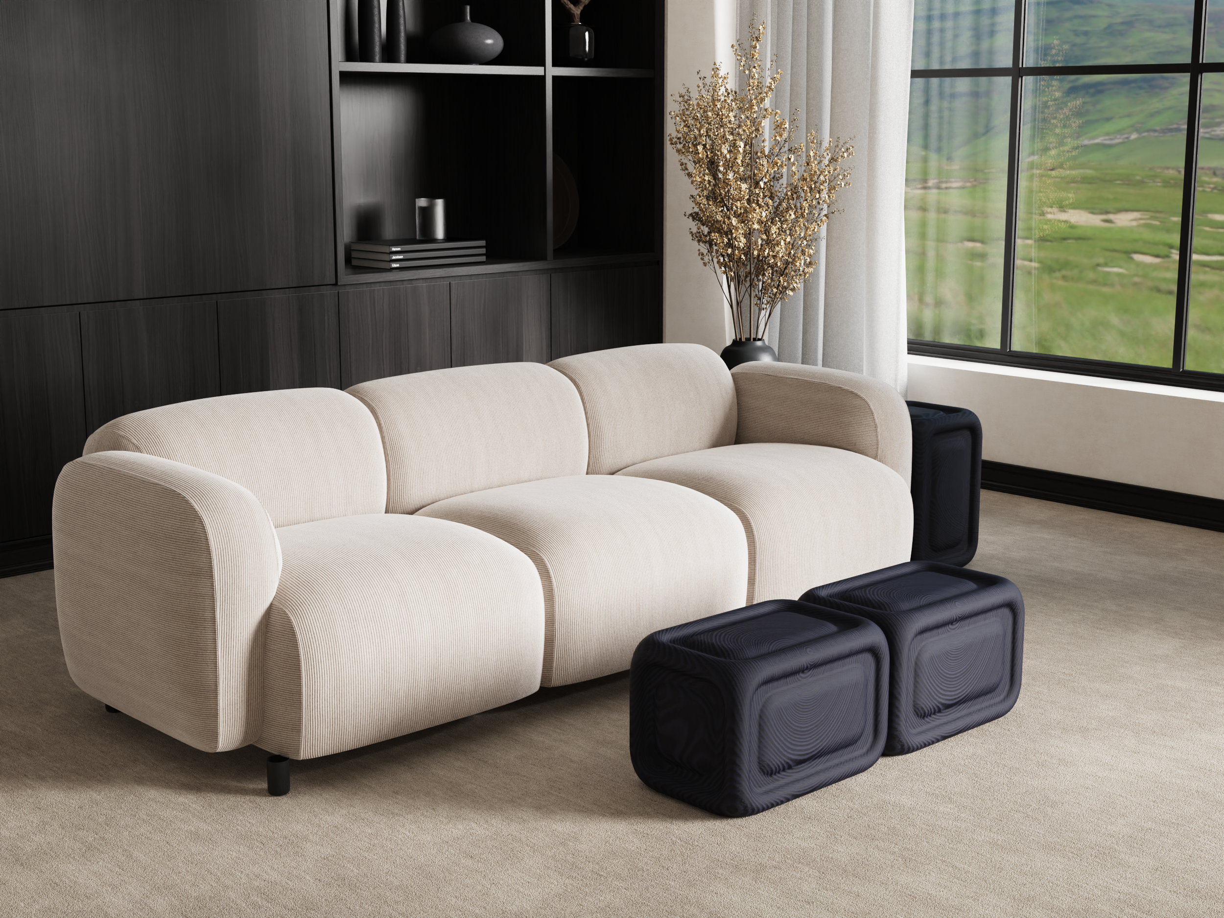SUPREME FORMS ARE MODULAR SCULPTURAL BLOCKS THAT SHIFT BETWEEN SEATING, SURFACE, AND SUPPORT, GUIDED BY THE STRUCTURE AND MOVEMENT OF JOHN COLTRANE’S A LOVE SUPREME TO CREATE FLUID ARRANGEMENTS.